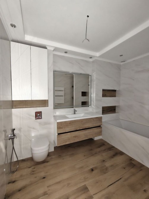 Выполнен качественный евроремонт с использованием дорогих материалов — интерьер выглядит элегантно, стильно и современно.