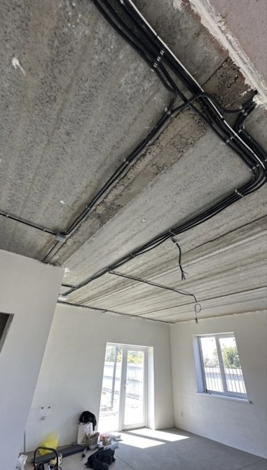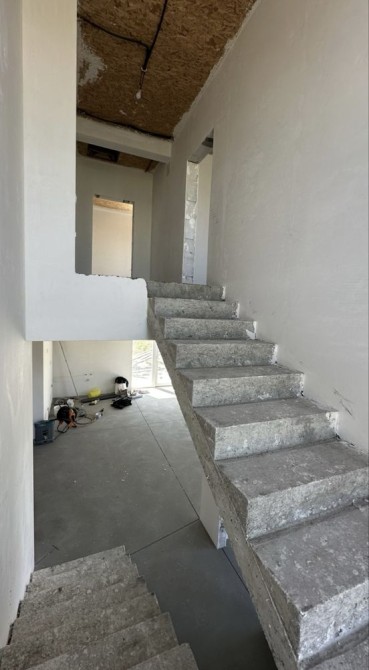 Литая лестница., сделана разводка, залиты теплые , водяные полы, отштукатурены стены.