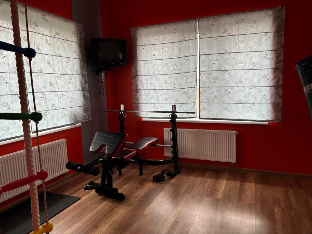 Рядом с домом отдельное оборудованное здание с сауной парилкой, комнатой отдыха и кондиционером. Гараж 23,2кв.м., подвал под хоз.помещением (кладовая)15,2кв.м. Два въезда во двор с автоматическими воротами. Двор и перед двором, до асфальтированной дороги выложена тротуарная плитка.