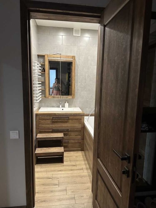 (Есть фото того, что было до и самого процесса строительства). Дизайнерский ремонт в лофт стиле, все из натурального дерева.