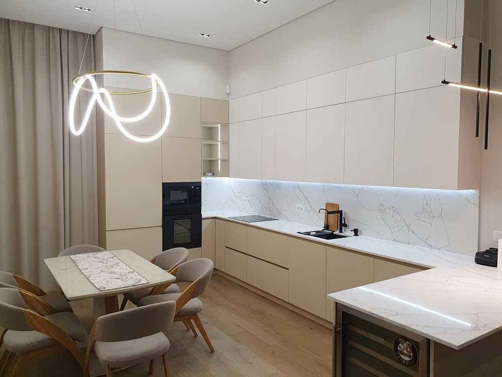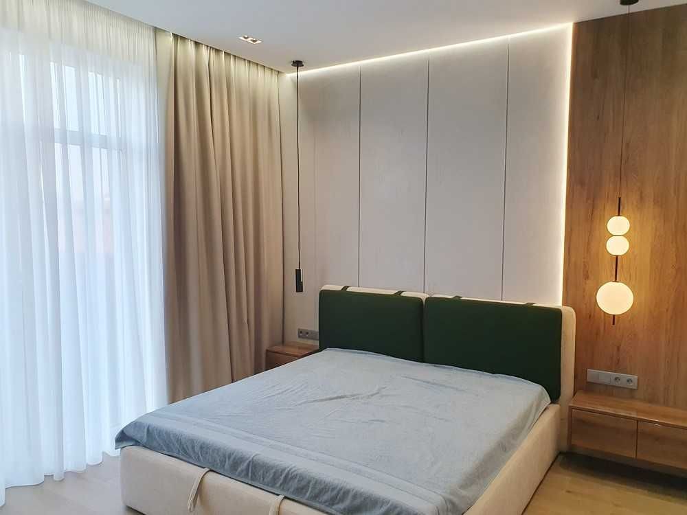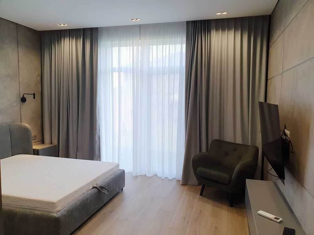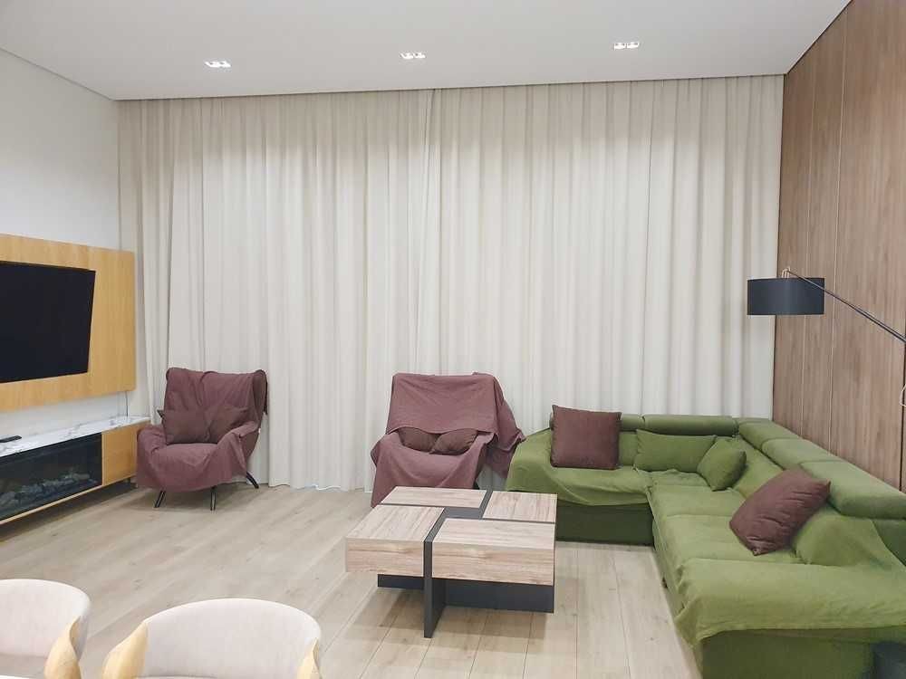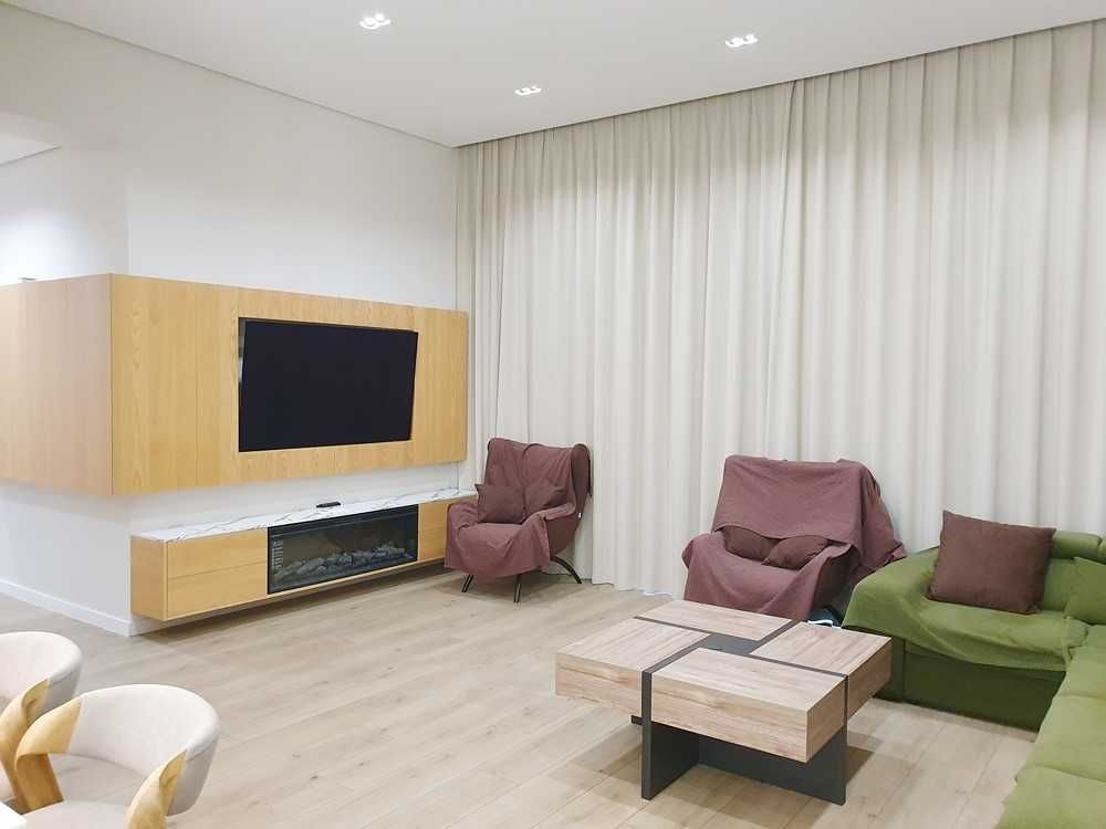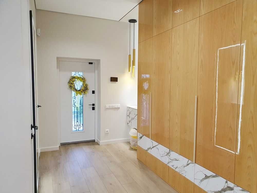 145м.кв. 1-но этажный дом с высокими потолками, большими панорамными окнами, просторными спальнями, гостиной студией с выходом на остекленную террасу. Дом построен в стиле хайтек, стены из газобетона + утеплен. Внутри выполнен дорогой и качественный дизайнерский ремонт, полностью укомплектован встроенной и мягкой мебелью, а также всей необходимой бытовой техникой, включая кондиционеры, централизованную систему вентиляции, скоростной интернет и видеонаблюдение. По планировке: кухня – студия, 3 спальни, гардеробные, хоз/комната, 2 санузла. Дом строился для себя, поэтому ни на чем не экономили !