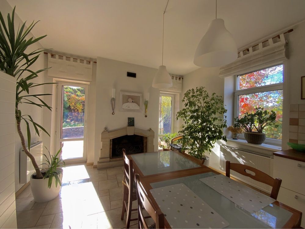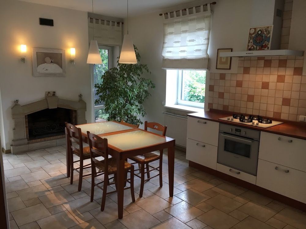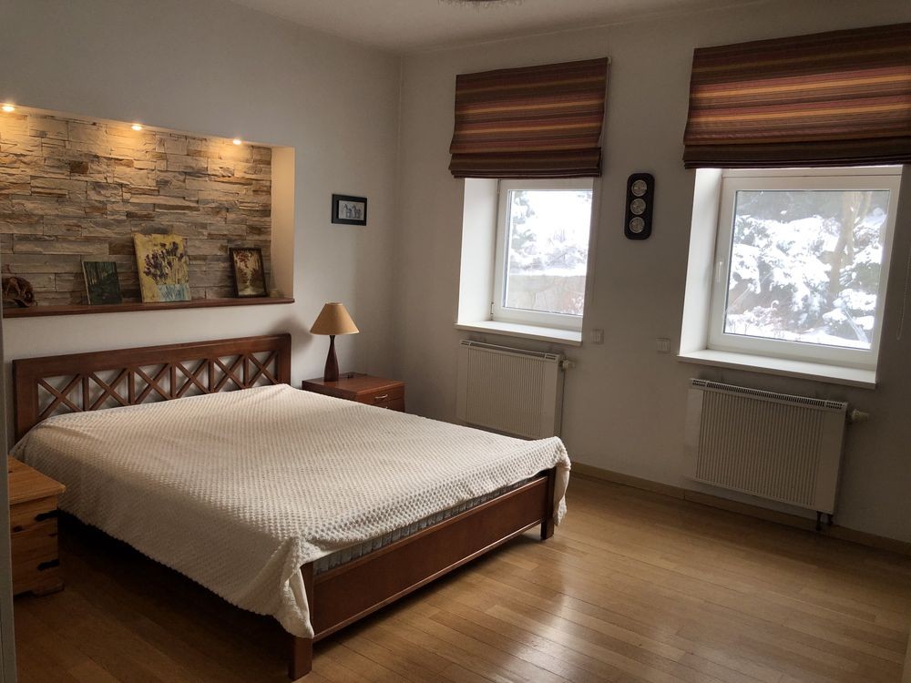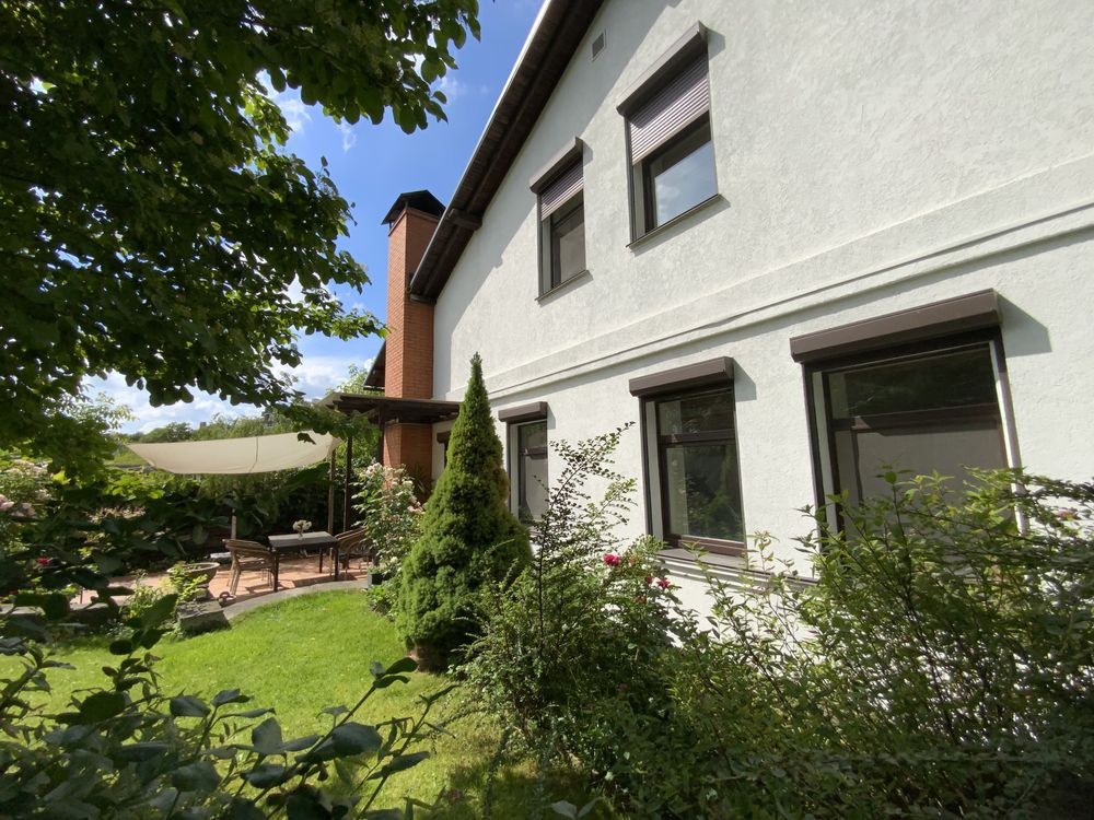 У будинку 5 кімнат: кухня- їдальня 24 м, вітальня 30 м, спальня господарів 36 м, дитяча 24 м, гостьова спальня 20 м, кабінет 12 м, санвузли 12 м та 6 м. Підлога - скрізь, де плитка - герамограніт - з підігрівом. У великому санвузлі плитка на полу Villeroy Boch, на стінах плитка Португалія. У всіх кімнатах - натуральна дубова паркетна дошка. Кондиціонери - Daikin, працюють і на підігрів. Сантехніка Grohe, Blanko, Kolo. Великий комин на кухні- діючий. Захисні металеві автоматичні ролети на всіх вікнах. Нова сауна на дровах з окремою душкабіною в цокольному поверсі. Сигналізація, тривожна кнопка ДСО. Автополив та дорогий ландшафтний дизайн усієї ділянки. Опалення- газовий котел Vaillant, бойлер Vaillant на 150 літрів, велика посудомійна машина, пральна машина АЕG, потужний стабілізатор напруги,вода - міський водопровід, але із артезіанської свердловини.