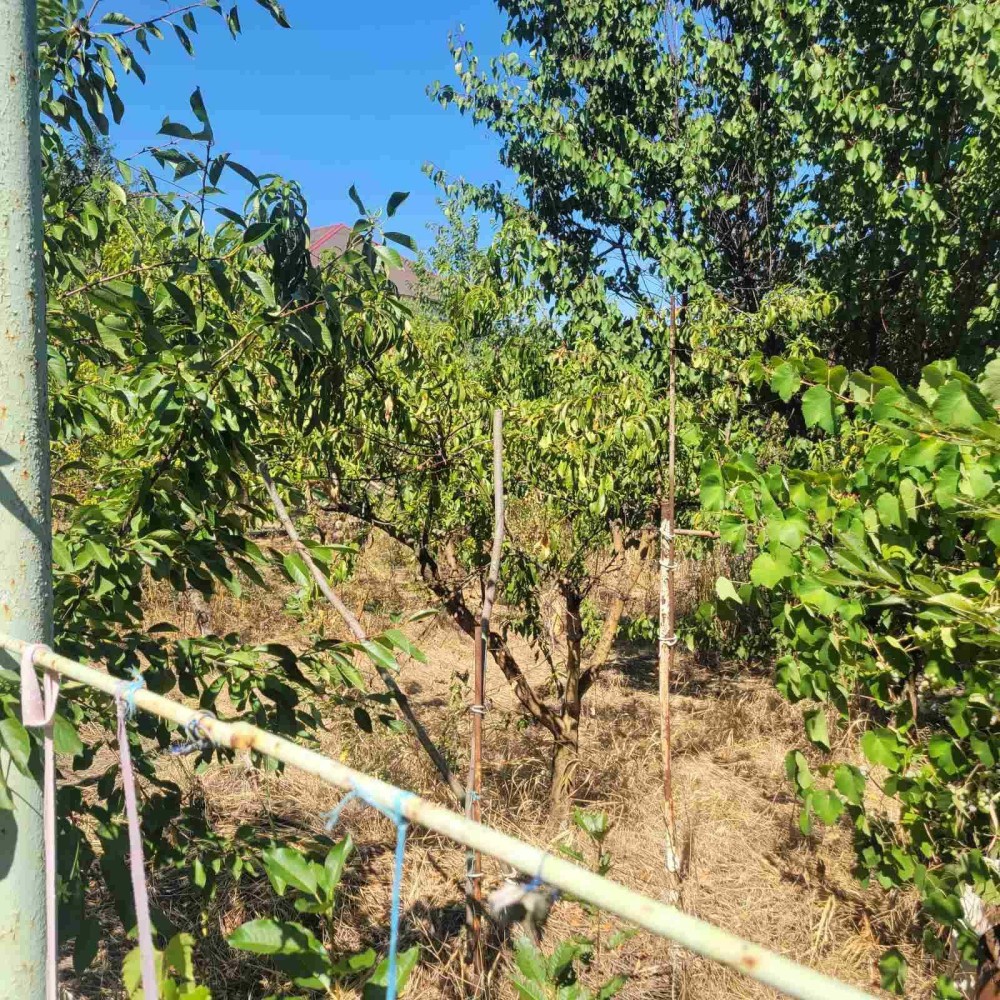 Очень хороший сад! Много фруктовых деревьев. Большая виноградная арка. Несколько сортов винограда. Участок ухожен..