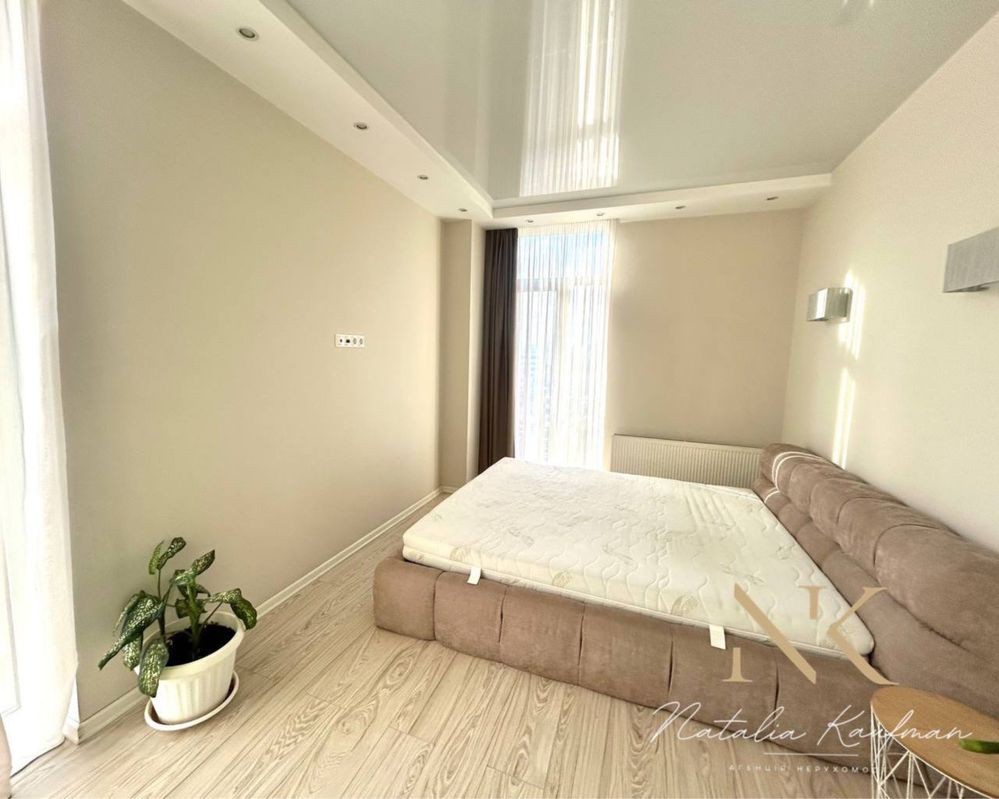 Меблі та техніка: двоспальне ліжко, шафа-купе, великий диван,кондиціонер, телевізор, пральна машина, посудомийна машина, варильна поверхня, духова шафа, витяжка, мікрохвильова піч, бойлер. Одна кімната закрита ( площа не врахована)