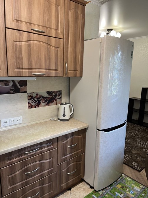 В квартирі є вся необхідна техніка: холодильник, кондиціонер, телевізор, пральна машина, мікрохвильова піч, газова плита, електрочайник, пилосос, праска, Wi-fi.