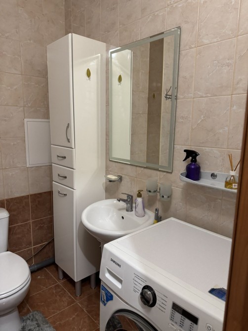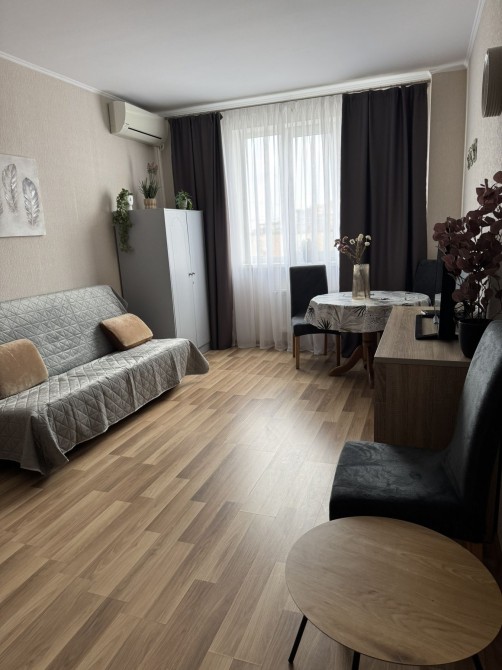 Квартира з ремонтом, повністю облаштована для комфортного проживання. Окрема велика кімната з двоспальним ліжком та диваном. Телевізор, кондиціонер, холодильник, морозильна камера, нова газова плита з газовою духовкою, мікрохвильова піч,пральна машина автомат, пилосос , дрібна кухонна техніка, є мінімальний комплект столового посуду та посуду для приготування їжі.