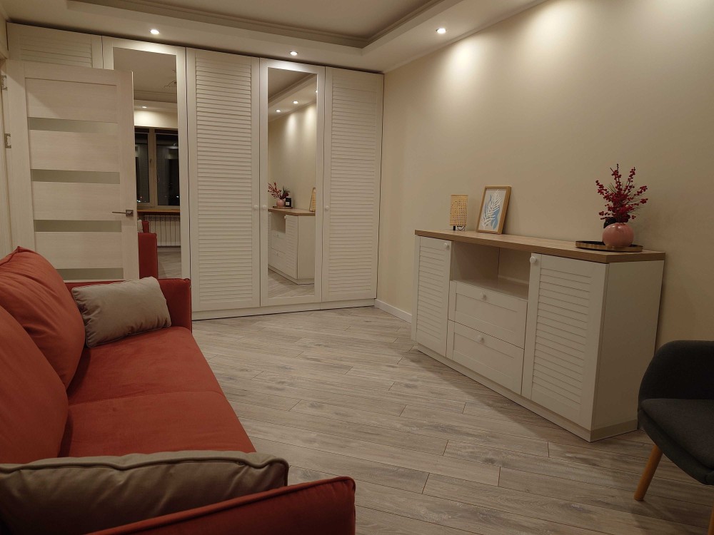 Квартира тепла, затишна, з продуманою системою зберігання.