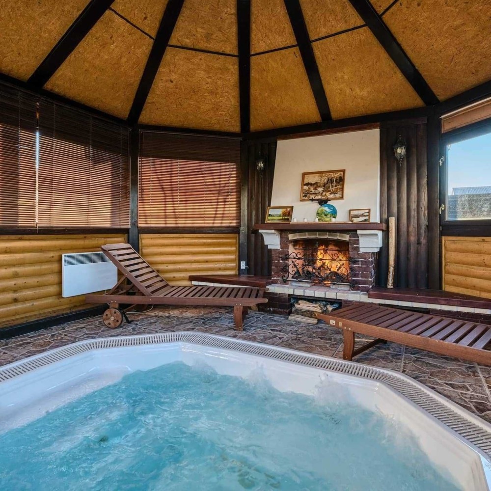 • Комфорт Кондиционер, Ванна, Душевая кабина, Камин, Охраняемая территория, Гараж, Автонавес, Автоматические ворота, Подсобные помещения, Баcсейн
