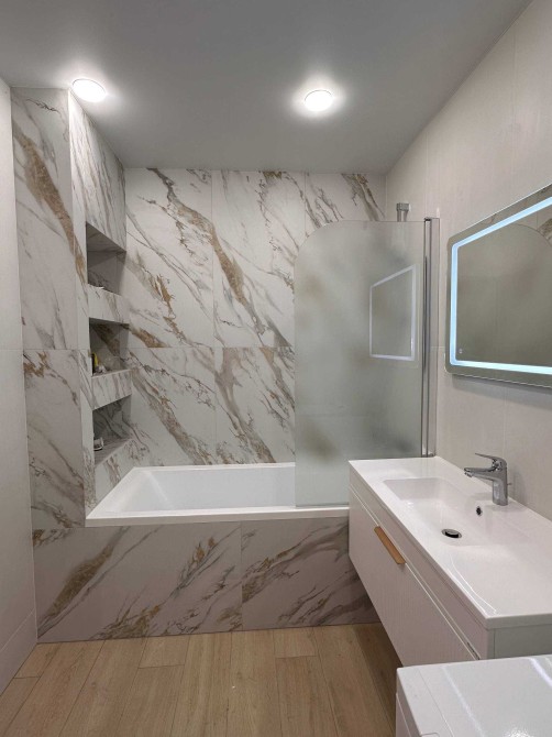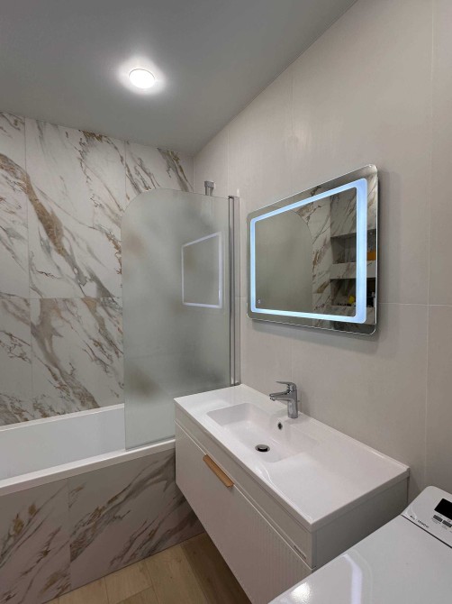 Основні переваги: • Площа: 72 м², 7 поверх • Ізольовані кімнати, роздільний санвузол • Балкон • Багато місць для зберігання речей (комори/шафи) • Розкладний диван у вітальні + робоче місце, кондиціонер і телевізор • У спальні — велике двоспальне ліжко та рекуператор (припливно‑витяжна вентиляція) • Індивідуальне газове опалення + підігрів підлоги • Посудомийна машина, чайник та інша базова побутова техніка • Стильне зоноване підсвічування для затишку та атмосфери