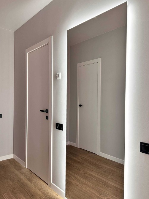 - Суміжний санвузол з розкішним дзеркалом і мийкою