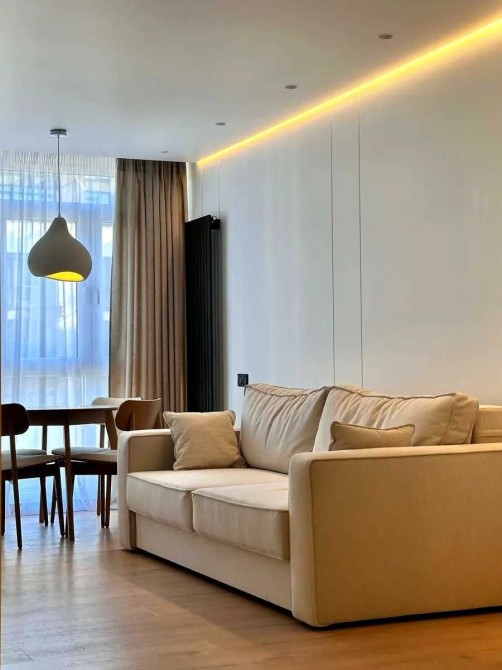 Простора кухня вітальня та ізольована спальня. Кухня облаштована усією необхідною технікою: посудомийна машина, мікрохвильова піч, духова шафа, чайник, вмонтований холодильник, витяжна шафа. Також є порохотяг і праска.У вітальні є телевізор та при потребі доставлять кондиціонер