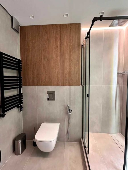 У санвузлі пралка-сушка 2в1, є гігієнічний душ. Душова кабіна з тропічним душем. Індивідуальне опалення, підігрів підлоги.