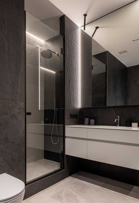 Зона майстер-спальні вміщує не тільки кімнату спальні, а й гардероб і власний майстер-санвузол. Санвузол з ванною.
