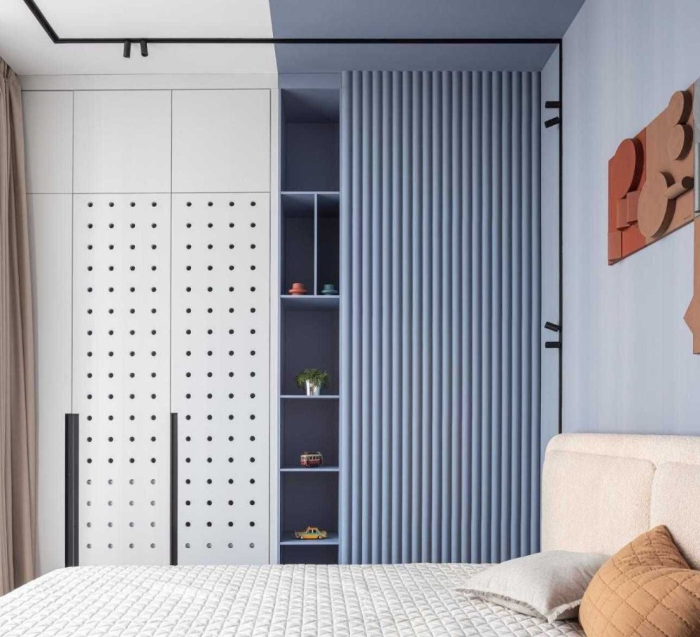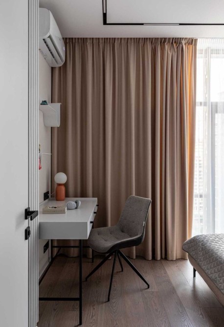 Між спальнею та санвузлом є розсувні двері у товщину стіни.