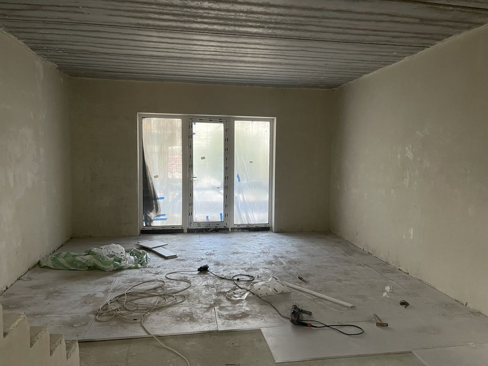 В будинку чистова штукатурка стін, стяжка підлоги, тепла підлога на першому поверсі.