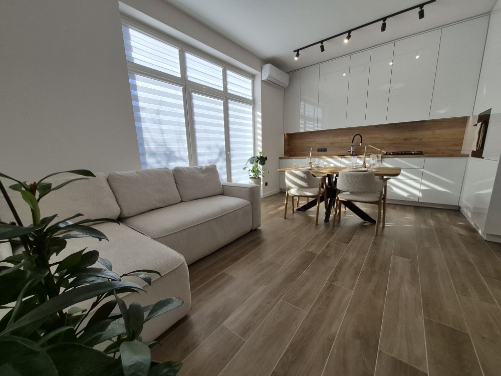 Виконаний якісний сучасний ремонт у світлих, лаконічних тонах.