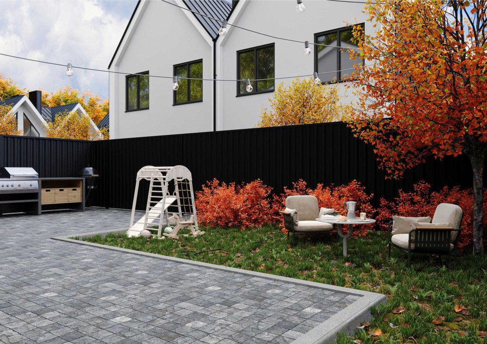 Площа дуплекса 105 м2 , а заднє подвір'я - 84 м2 .