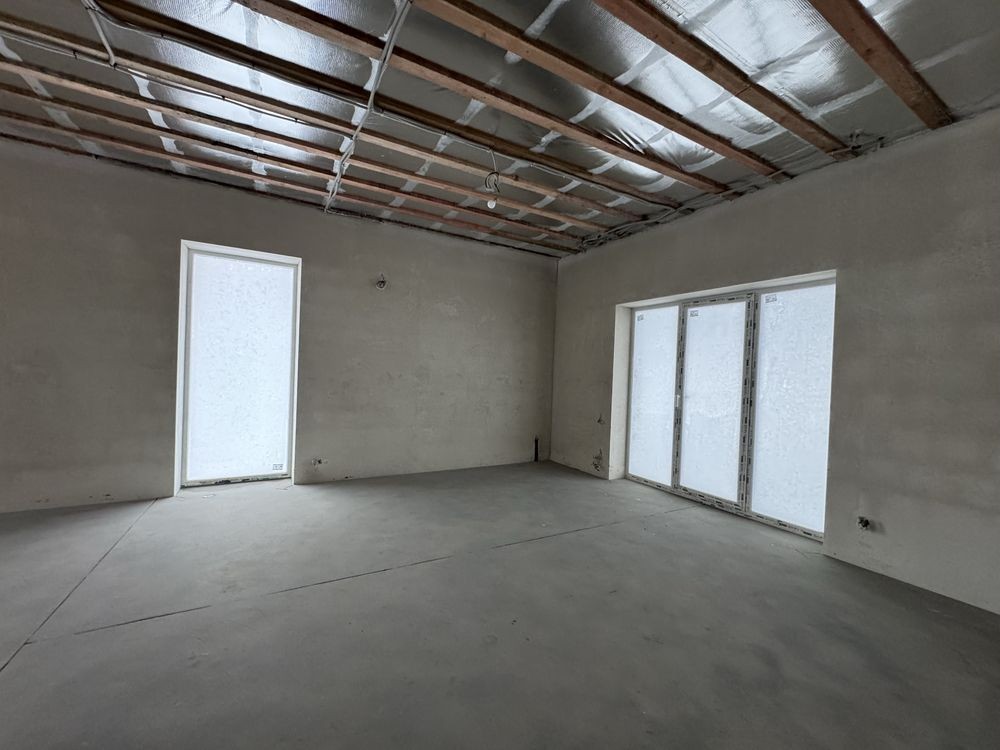 Продумане планування включає три окремі спальні, простору кухню вітальню з виходом на велику терасу площею 16 квадратних метрів, яку можна облаштувати під зону барбекю та відпочинку. На першому поверсі також передбачена додаткова кімната, що підійде під спальню або кабінет, є кладовка та котельня.