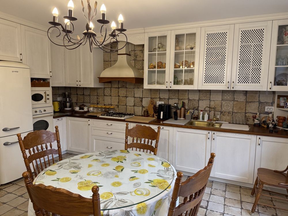 В будинку 4 спальні кімнати, 2 санвузли, велика кухня-вітальня.