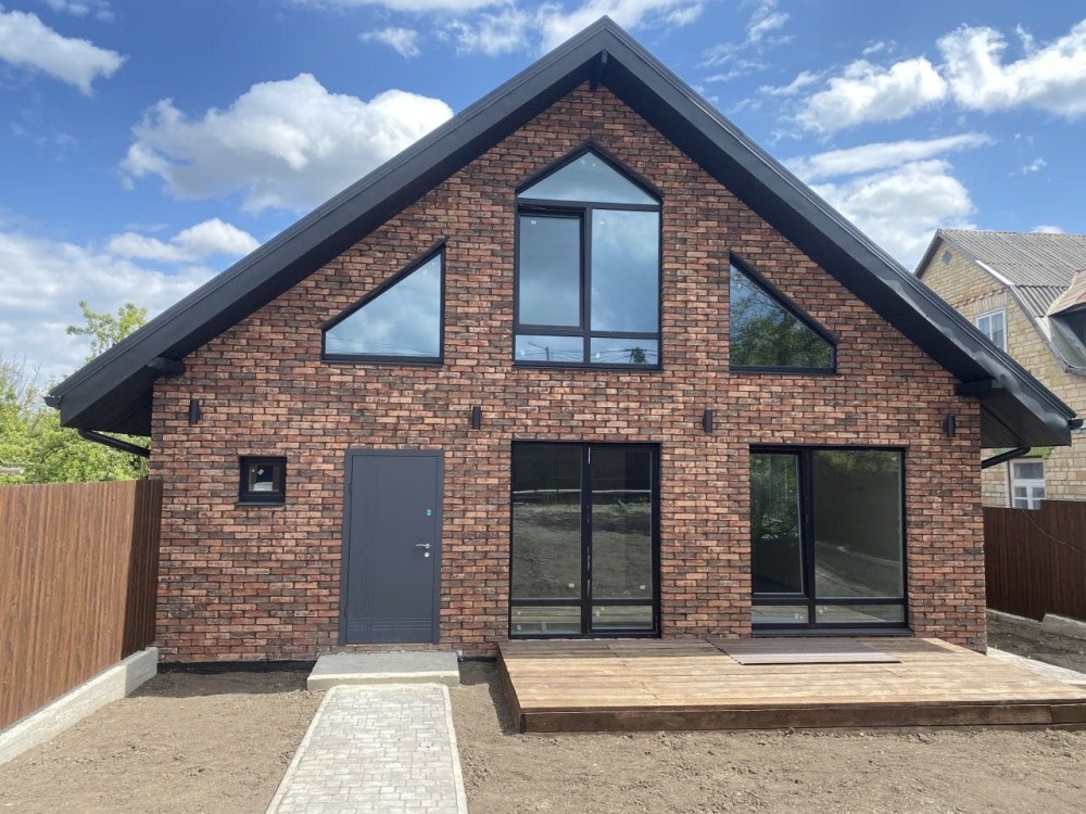 До вашої уваги пропонується в КМ" ЗЕЛЕНА БАВАРІЯ ” одноповерховий будинок-дуплекс 110м2 з мансардою з цегли Баварської кладки 15 хв від Видубичів!