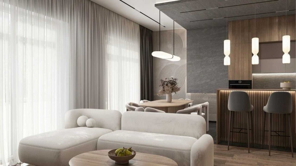 У вартість входить сучасна кухня з технікою: варильна поверхня, витяжка, холодильник, посудомийна машина;