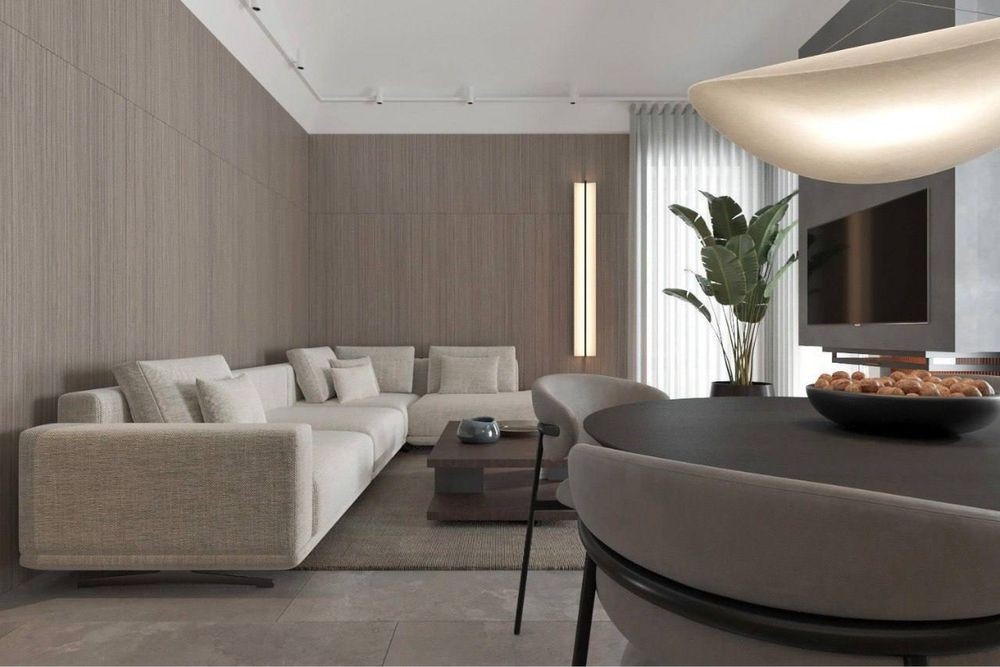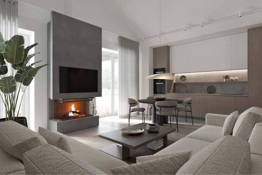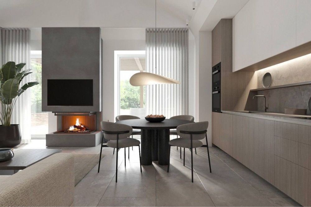 • простора кухня-вітальня з другим світлом, стильними меблями та виходом на терасу;