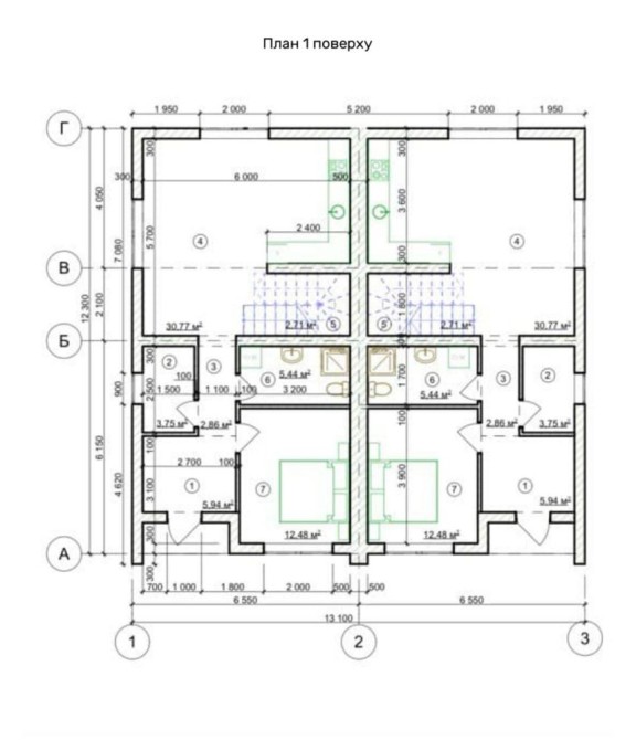 Загальна площа дуплексу 130,7 кв.м. Земельна ділянка 2,3 сотки.