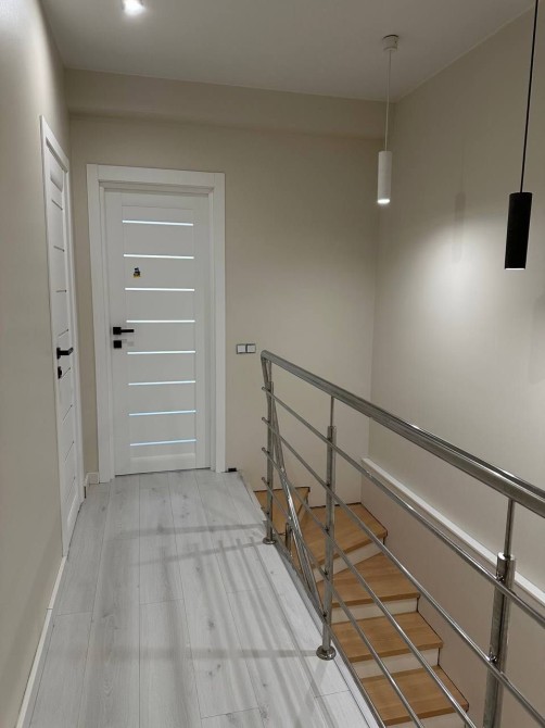 Дуплекс двоповерховий загальною площею 116 м2, вміщає 4 окремі кімнати, велику кухню-вітальню, гостьових санвузол, ванну, гардеробну.