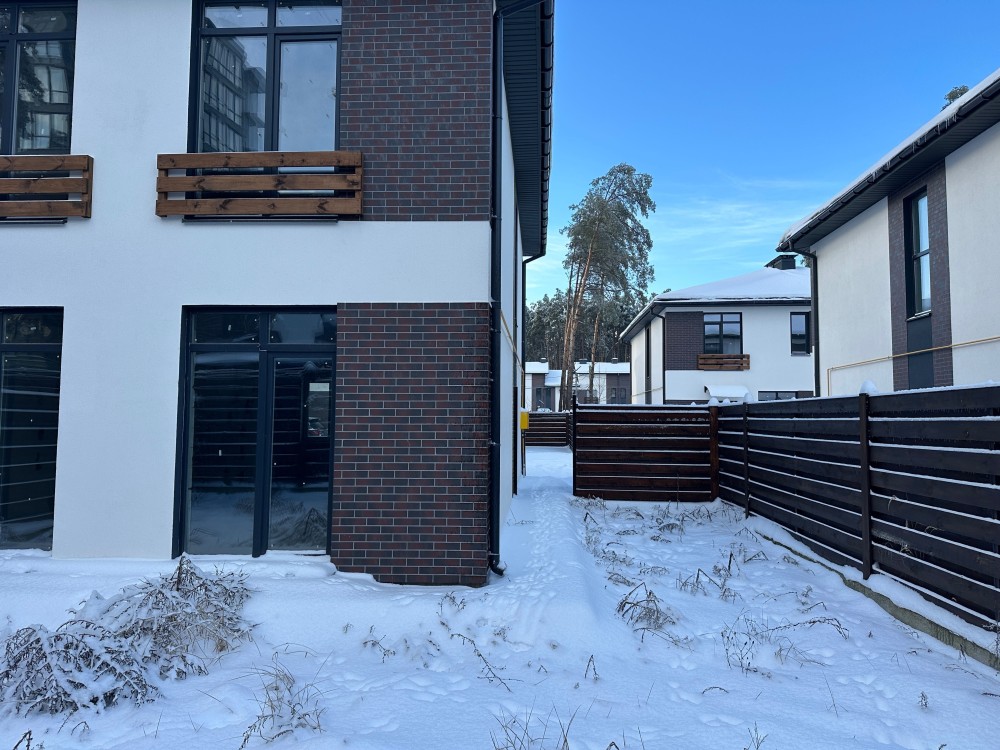 В будинку 4 окремі кімнати, велика кухня-вітальня з виходом на задній двір, ванна кімната на кожному поверсі. Заїзд на спільну територію з сусідами через відкатні ворота. Кожен має свій окремий задній двір.