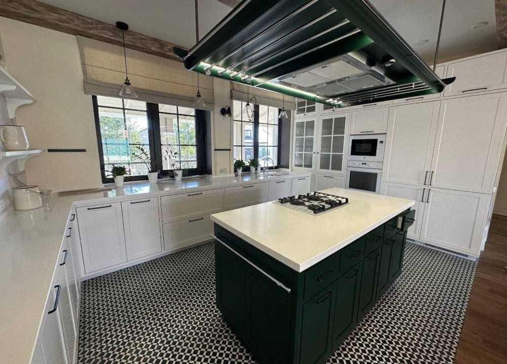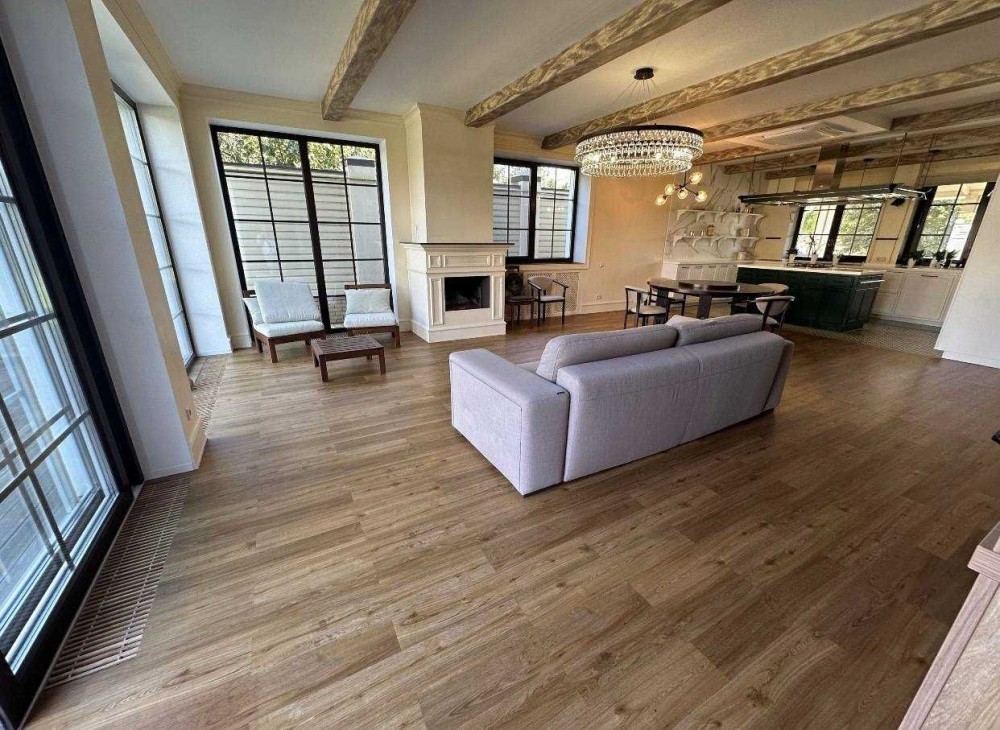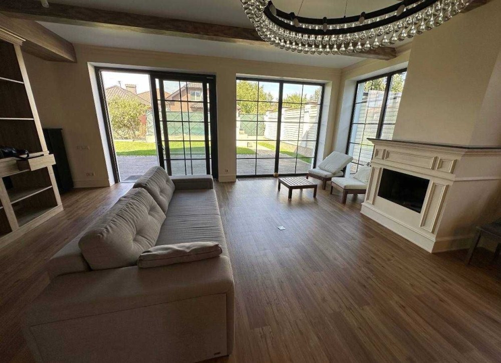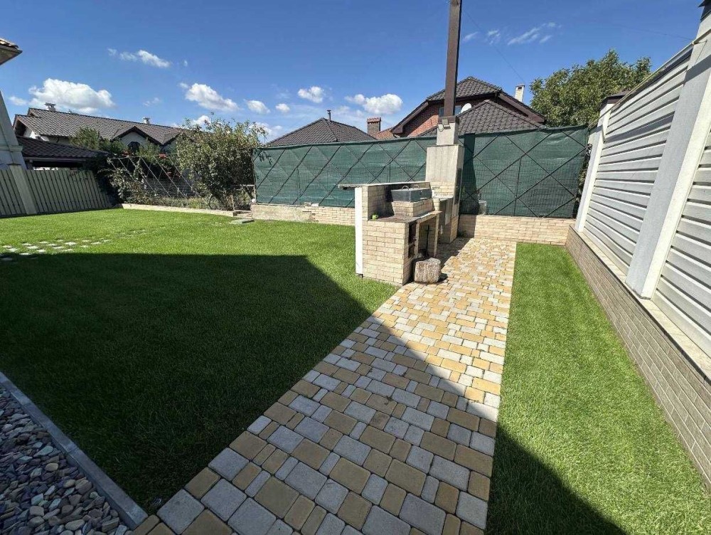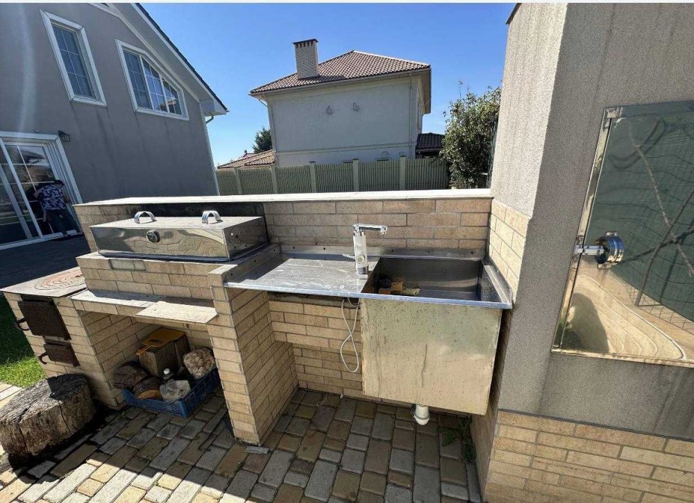 Дом расположен на пяти сотках, газон, терраса, гараж для авто. Три этажа, 280 м., просторная студия, четыре спальные комнаты, два санузла. Дом укомплектована мебелью и техникой. Генератор, осмос, система смягчения воды, тепловой насос, возможность подключение к системе охраны. Кондиционирования, тёплые полы, есть камин. Солнечные панели для подогрева воды. Есть подвал.