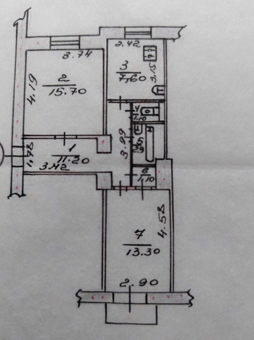 • Площадь кухни 7.6 м2