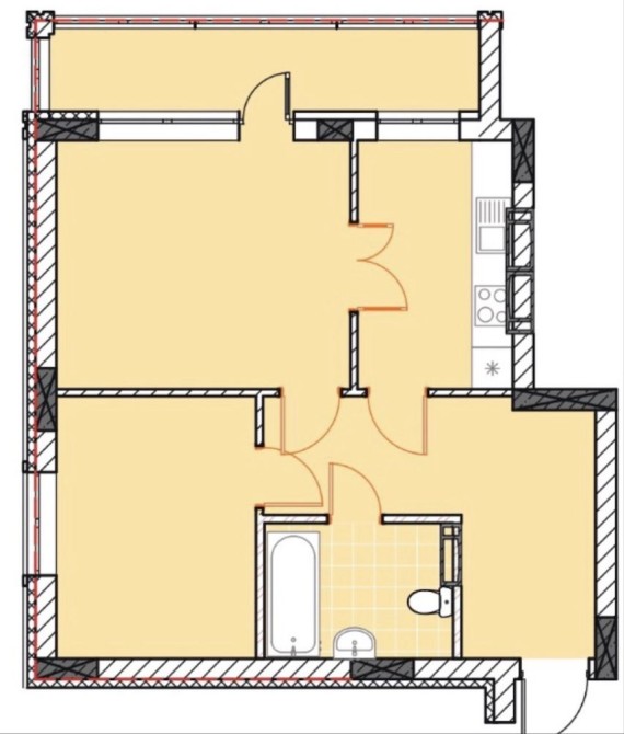 Наповнення: стяжка, штукатурка, в квартиру заведені комунікації.
