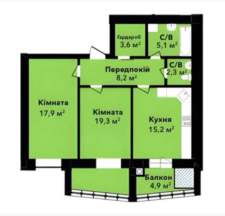Загальна площа: 76,5 м²