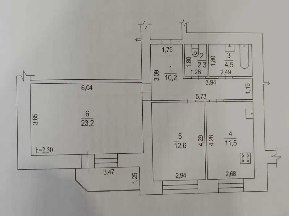 Квартира світла та простора. Загальна площа 64м кв. Кімнати площею 23,2м кв та 12,6м кв. Площа кухні - 11,5 м кв. Санвузол роздільний.