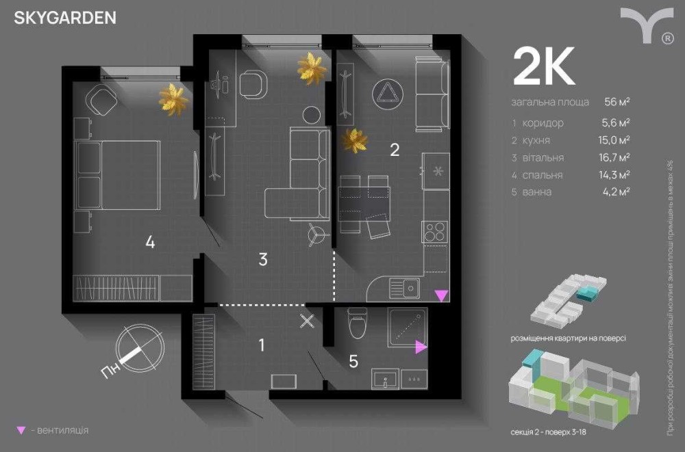 Площа: 56 м²
