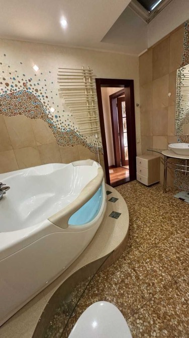 - Розкішна спальня з гардеробом та ванною кімнатою, гідромасажною ванною та романтичною підсвіткою, що створює атмосферу спокою і затишку для дорослих.