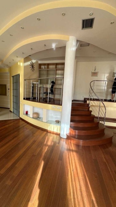 - **1 поверх**: велика світла вітальня-студія в пастельних тонах з елементами інкрустації на стінах і підлозі, стильна кухня, великий гардероб і санвузол в елегантному стилі "Cavalli".
