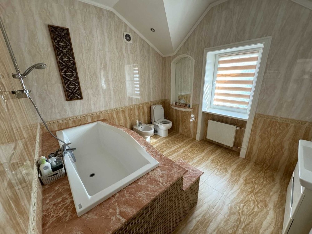 Асфальтований під'їзд, ландшафт, автополив, альтанка, тепла підлога, відеоогляд, охорона, генератор, підвал, гараж на 2 авто.