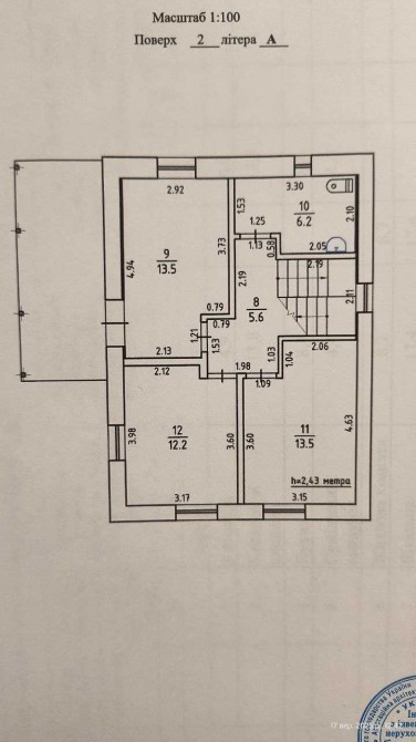 2 поверх: коридор, 3 спальні, санвузол, великий балкон.