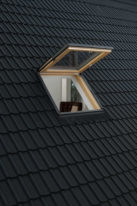Висота стель близько 5 метрів у поєднанні з панорамними вікнами створює максимум світла та простору. Є можливість встановлення прорізного вікна у скаті даху для ще більшого природного освітлення та індивідуального стилю. Передбачена технічна можливість монтажу сонячних панелей для підвищення енергоефективності.