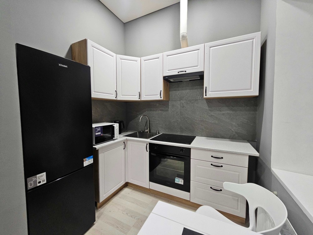Ремонт выполнен полностью, включая замену проводки и установку новых сантехнических и электроприборов. На полу плитка, стены свежие, окрашенные. Все окна новые, система отопления и водоснабжения обновлена.