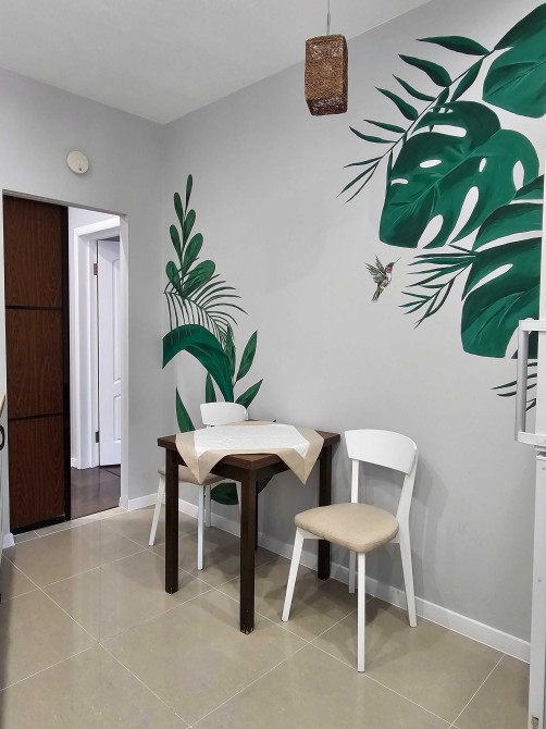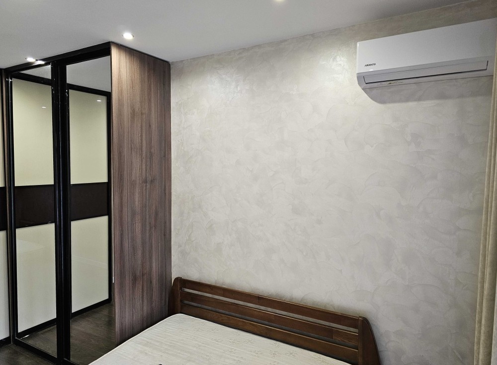 Стены оформлены декоративной штукатуркой, на полу уложен ламинат. Санузел облицован плиткой, установлена новая сантехника и смесители. Интерьер выполнен в светлых тонах, что создает атмосферу уюта.