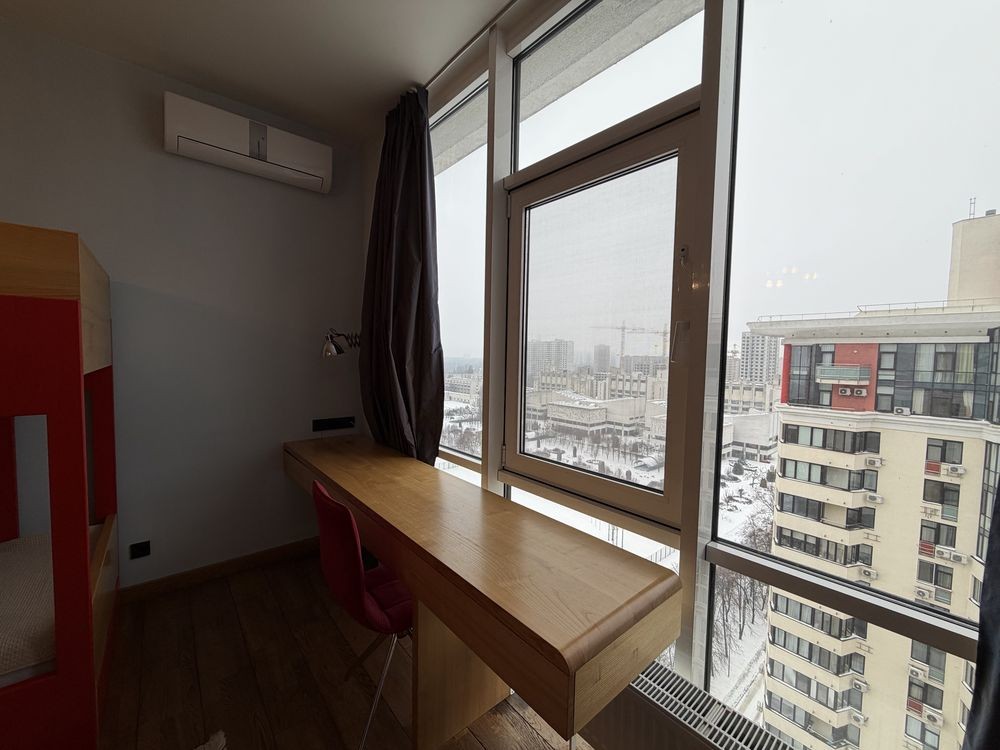 · Панорамні вікна з видом на стадіон Київського національного університету, ВДНХ та паркову зону.