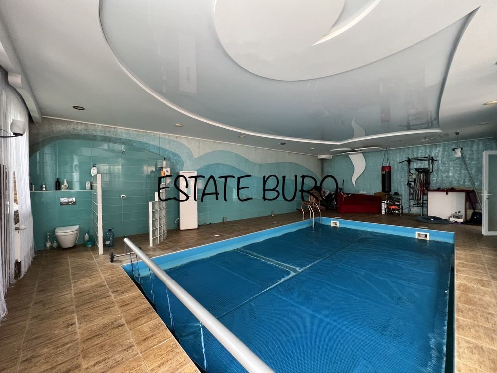 Участок 9 соток. На участке ландшафтный дизайн, зимний закрытый бассейн, зона BBQ, погреб, парковка на 2-3 машины.