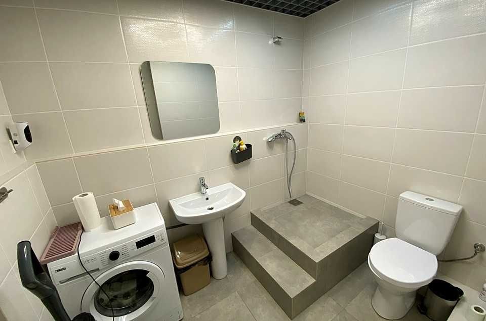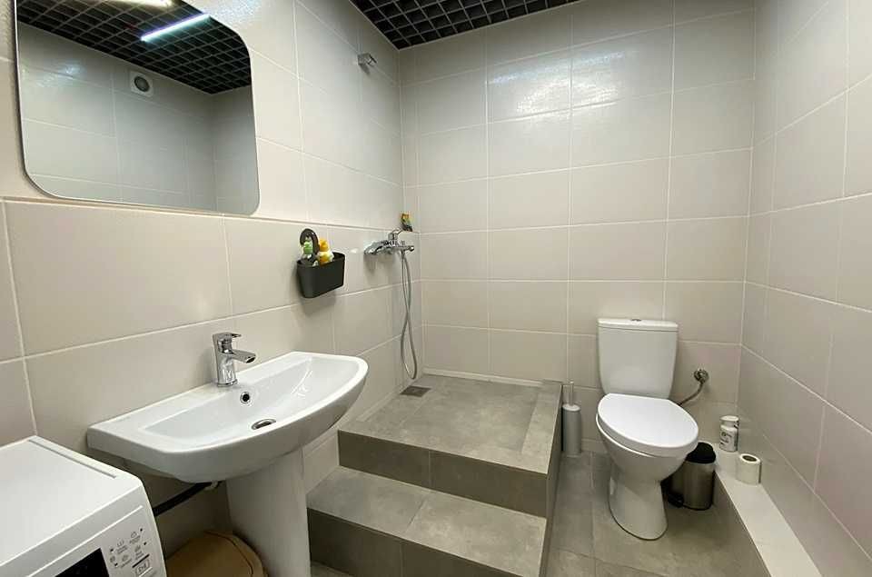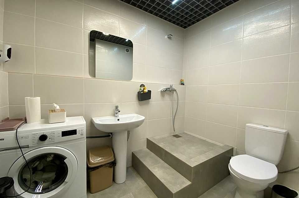 Загальна площа: 58,3 кв.м.. Планування: одна велика кімната, за дзеркальними дверима розташований санвузол, підсобне приміщення та ще одна простора кімната. Є повноцінний санвузол із встановленою сантехнікою, пральною машиною. Опалення в приміщенні електричне(заведено 15 кВт), здійснюється за рахунок радіаторів та електрокотлу, також доповнено розведена електрика з можливістю підключення акумулятора на випадок блекауту. Приміщення розташоване на повноцінному першому поверсі, без сходинок, можна зручно заходити та завозити візок, наприклад.