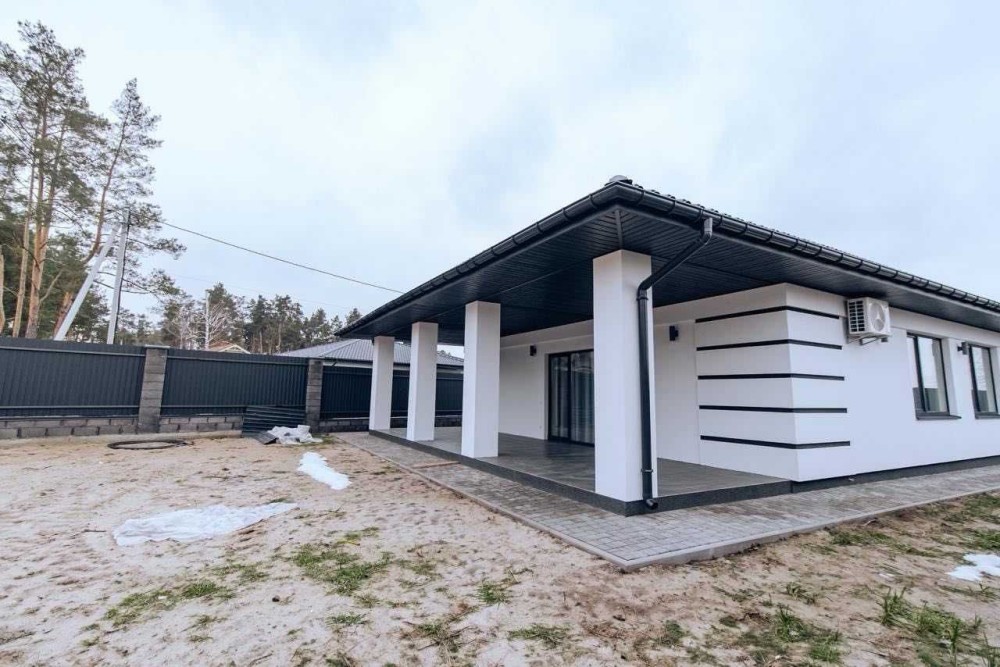 Будинок 100 м2, одноповерховий. Знаходиться в Котеджному містечку, поруч з лісовою частиною Бучі.