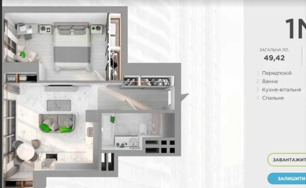 49,1 м² (житлова 16,9 м², кухня 20,2 м²)