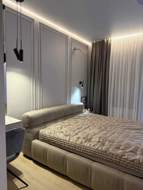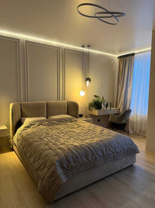 Широкая входная группа, кухня - столовая с огромным гостинным залом и выходом на терассу, 2 с/у, 2 гардеробные комнаты, 2 большие спальни с выходом на балкон.