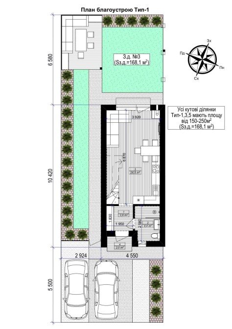 • Благоустрій території з доріжками та паркомісцем