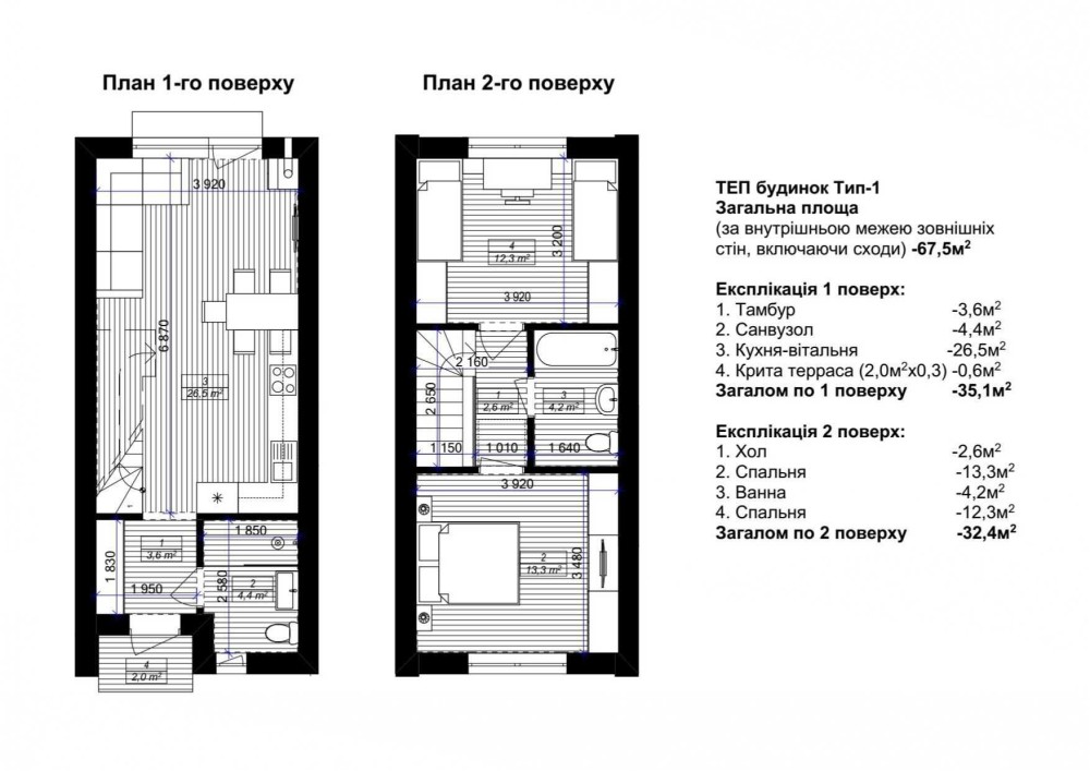 • Площа будинку — 70м²